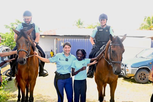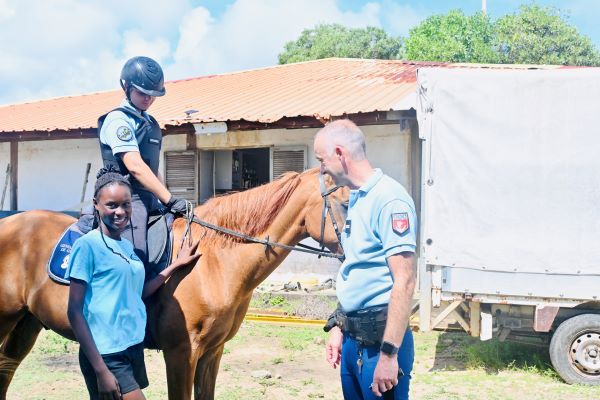 Les élèves de l’atelier Défense de 4ème se sont rendus au centre équestre de Kourou ce vendredi 21 novembre pour rencontrer des membres de la Garde républicaine. Cette branche de la gendarmerie, connue pour ses missions de sécurité, de présentation officielle et de maintien de l’ordre à cheval, a présenté aux élèves l’importance de la discipline et du travail en binôme avec les chevaux.